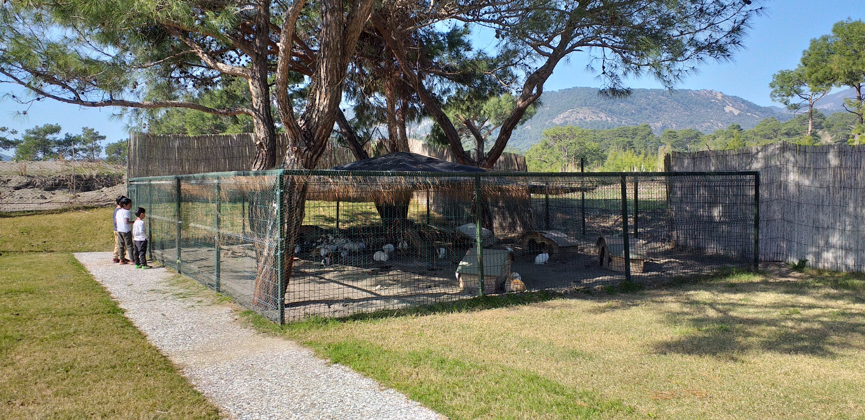 They have peacocks, goats & a variety of birds in caged pens. They also have information about the animals, so it can be a nice learning activity. The Kids Club do take the kids down there on some days.